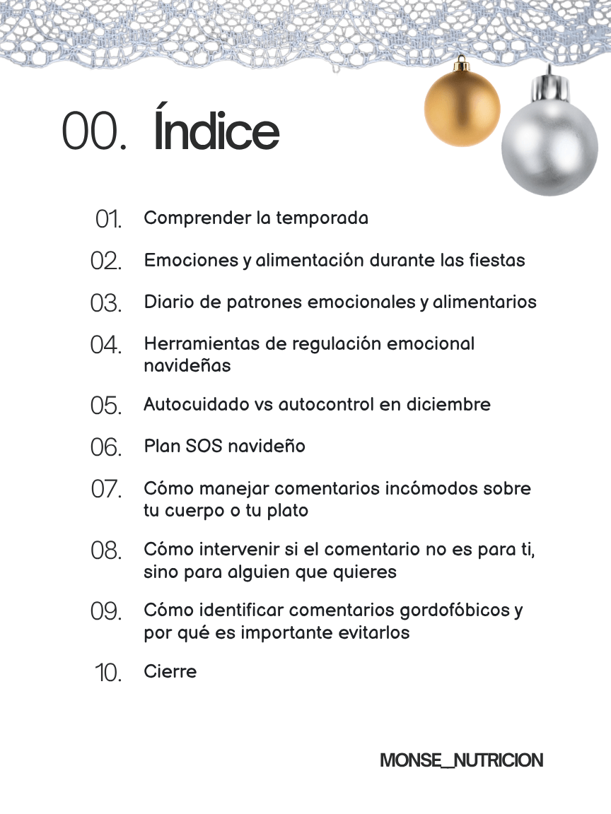 Pensado para acompañarte durante la temporada navideña, un periodo donde la combinación de reuniones, comida especial, expectativas sociales y dinámicas familiares puede intensificar emociones y generar tensión alrededor de la alimentación.